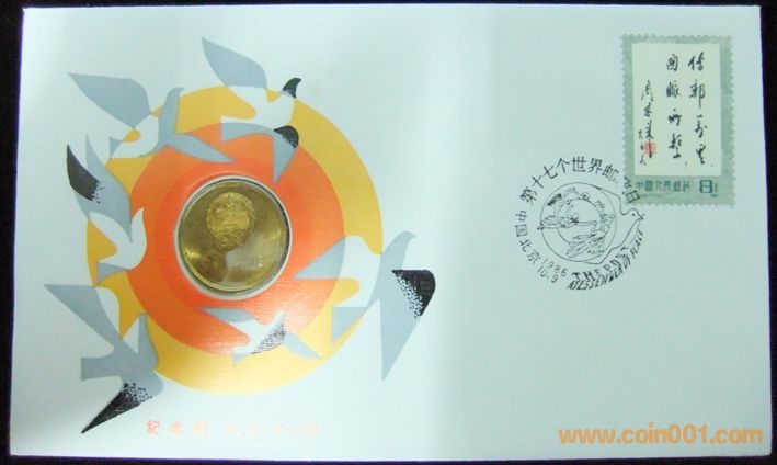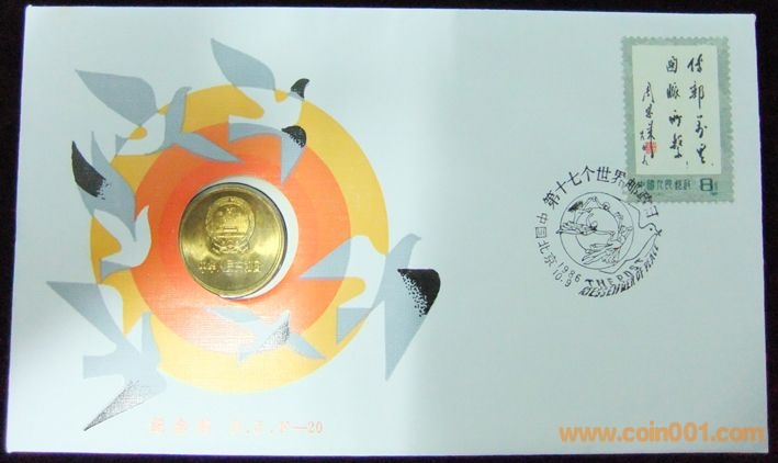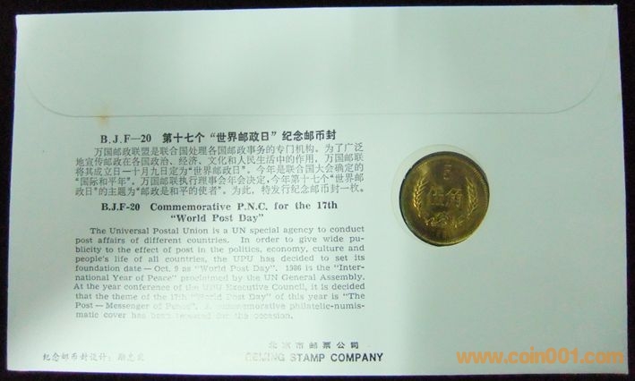 BJF-20 1986年第十七個世界郵政日紀(jì)念郵幣封 (1981年5角幣)一個點的110元