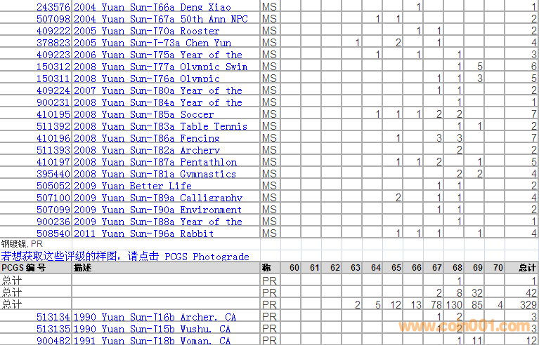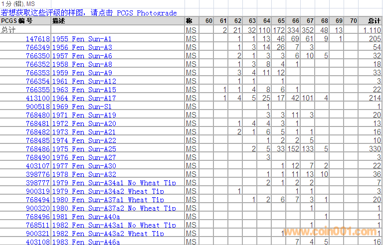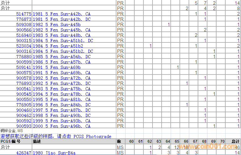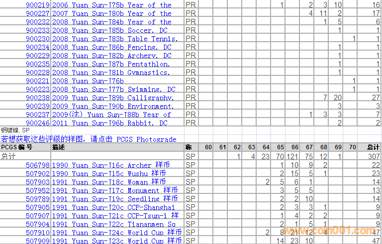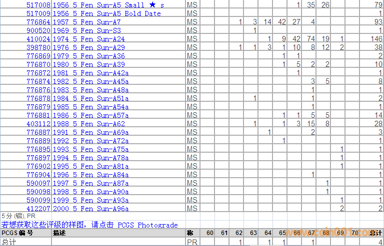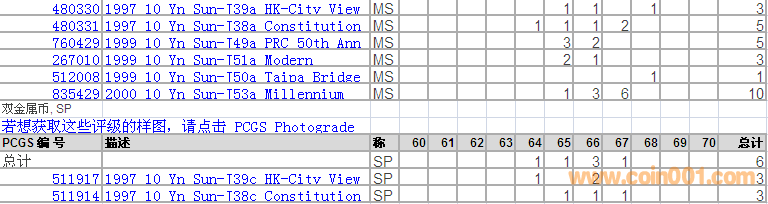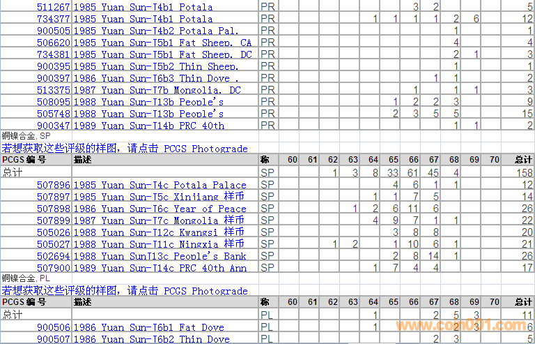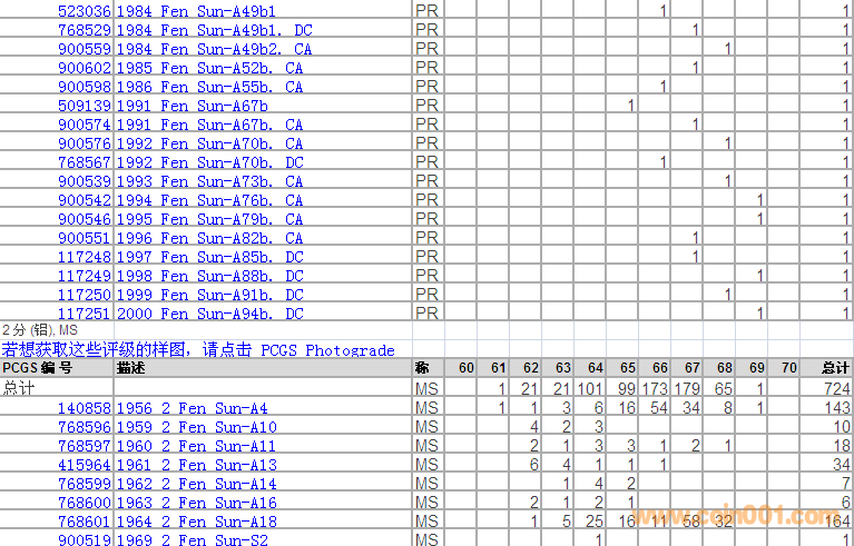 PCGS硬幣評(píng)級(jí)分?jǐn)?shù)分布 ..