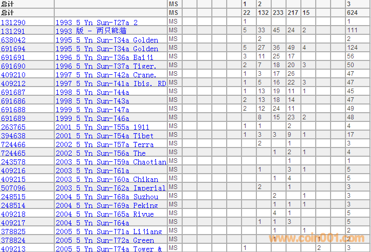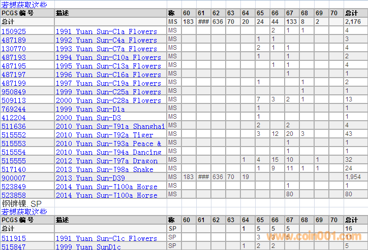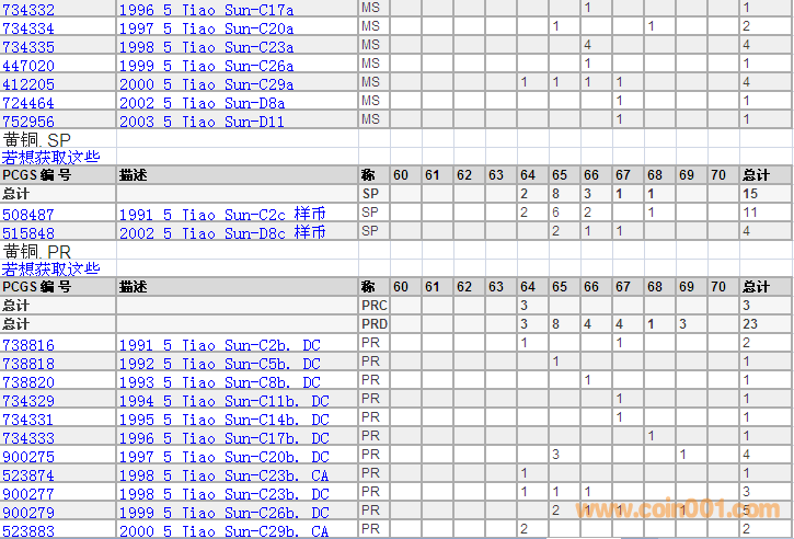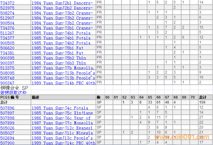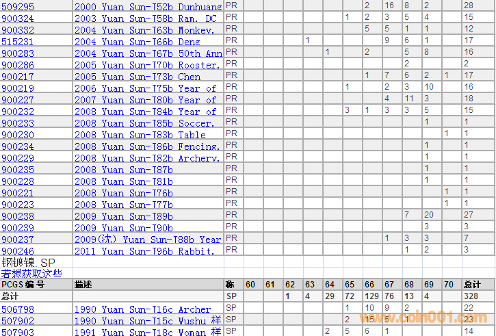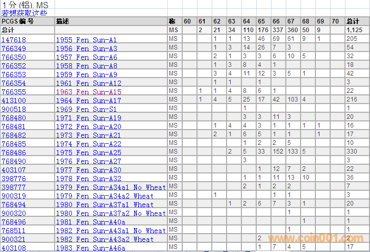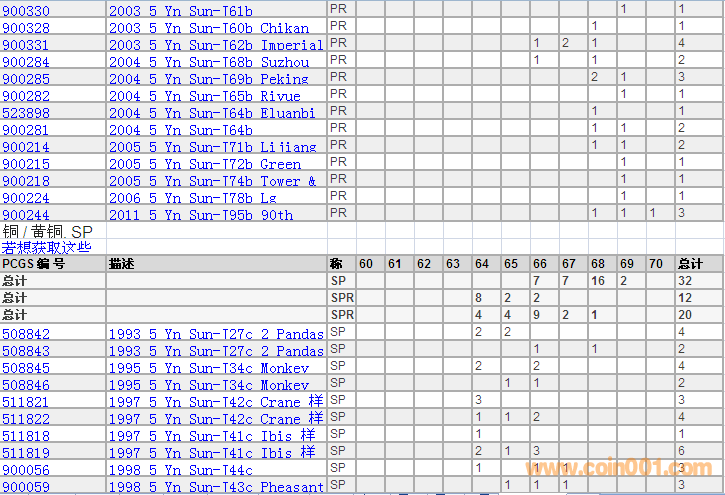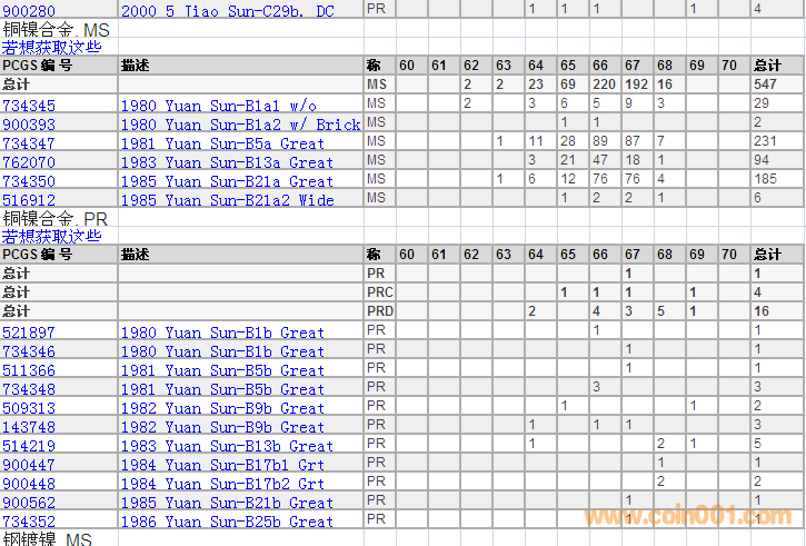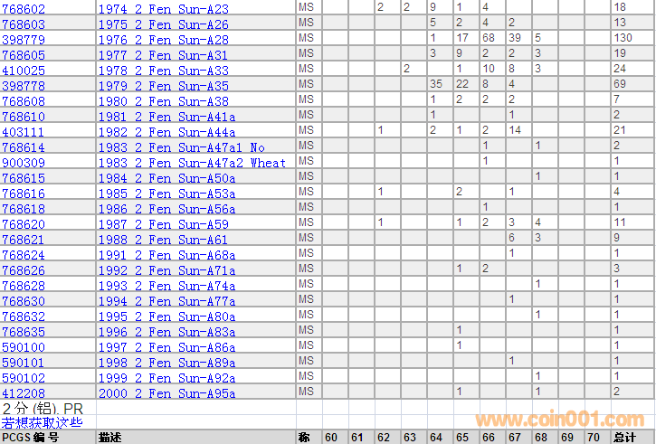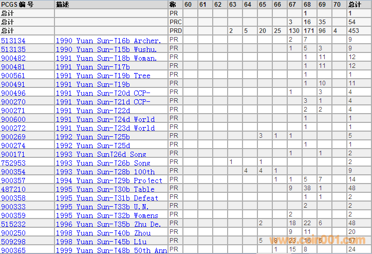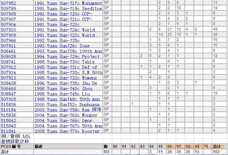 PCGS硬幣評級分數(shù)分布 ..