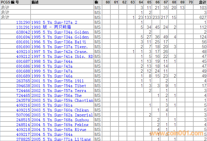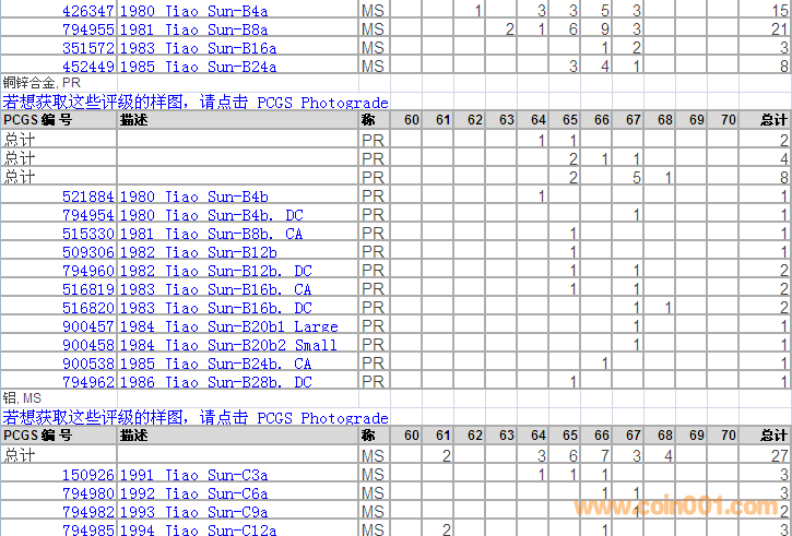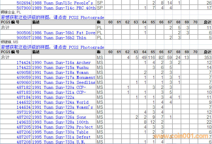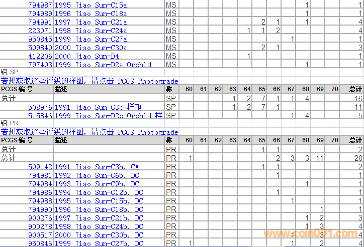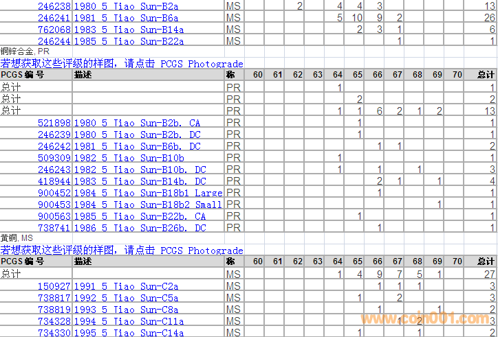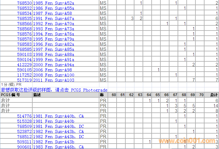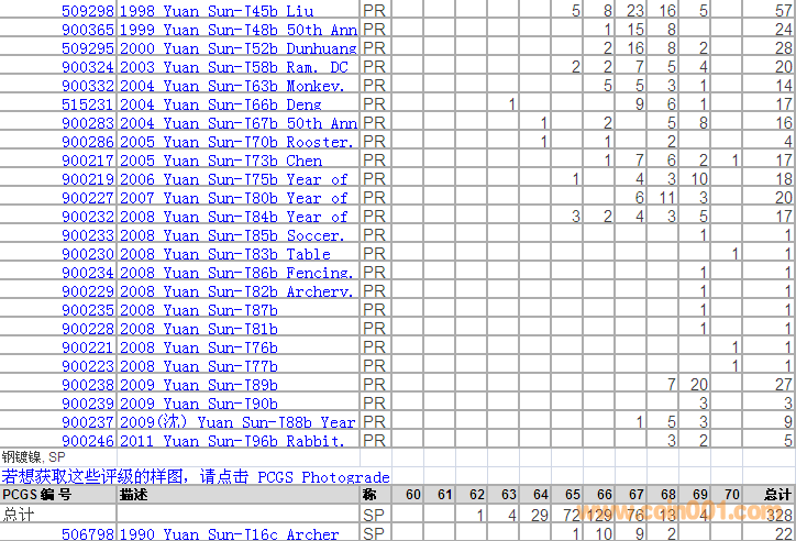 PCGS硬幣評級分?jǐn)?shù)分布 ..
