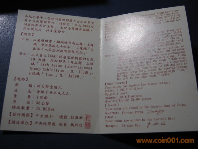 18屆亞洲郵展銀幣 及 ..