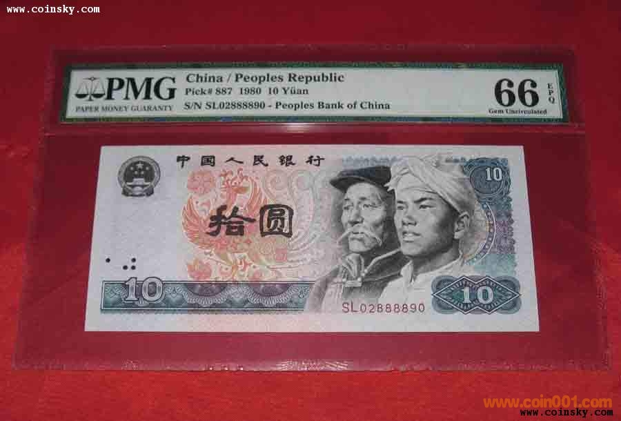 PMG66 80版10元冠號(hào): SL 02888890【無(wú)4】, 180元。