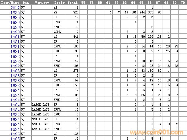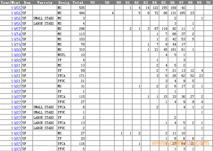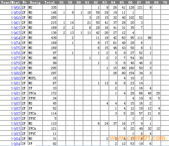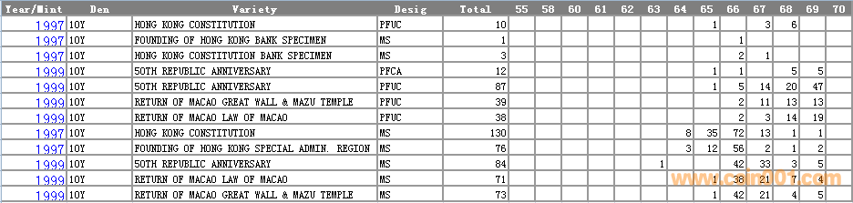 NGC硬幣評(píng)級(jí)分?jǐn)?shù)分布 ..
