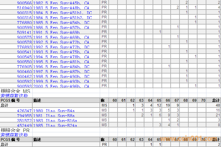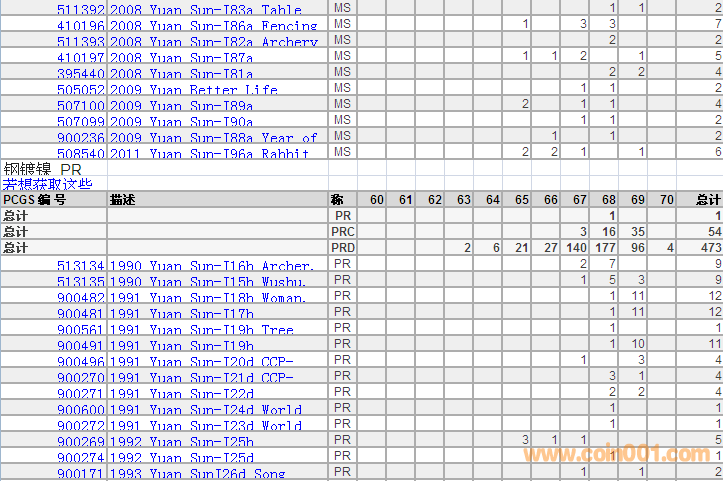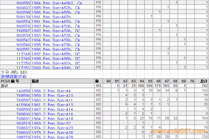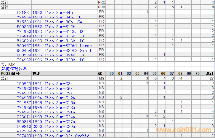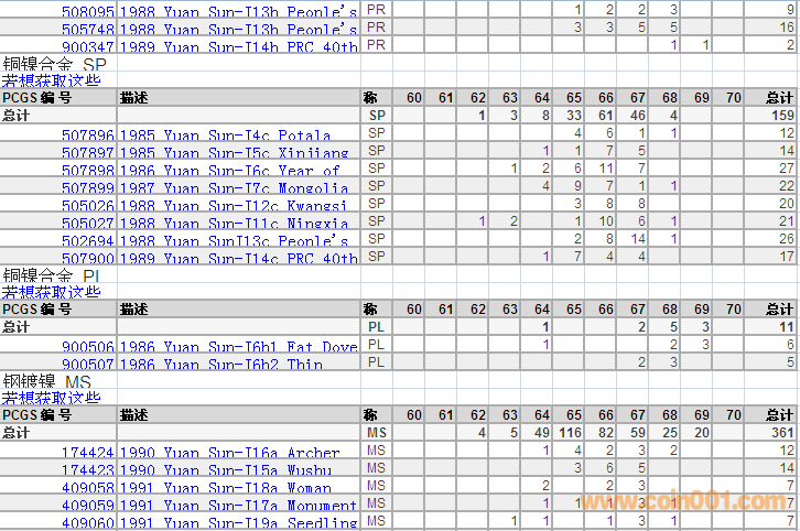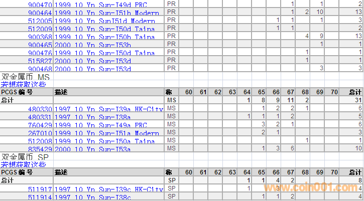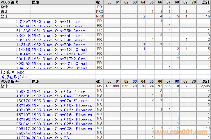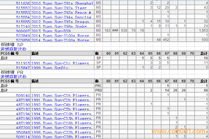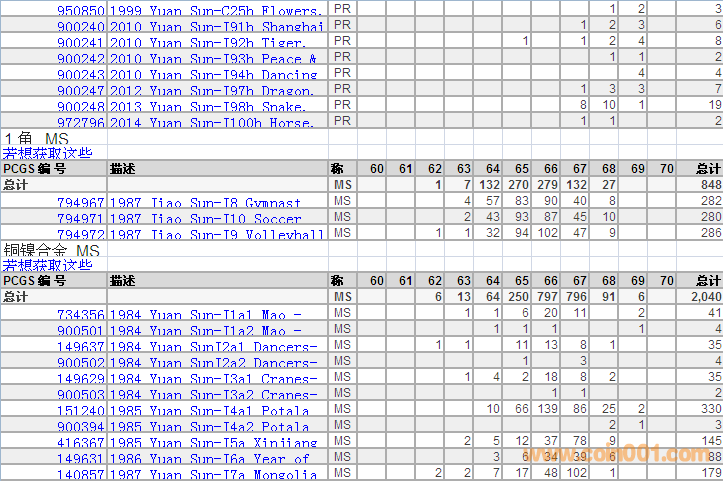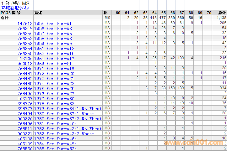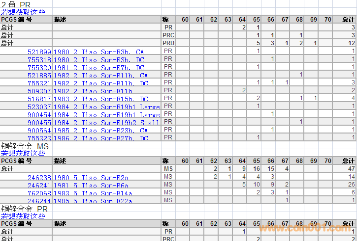 PCGS硬幣評級分數(shù)分布 ..