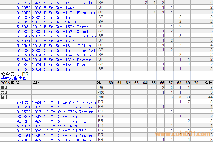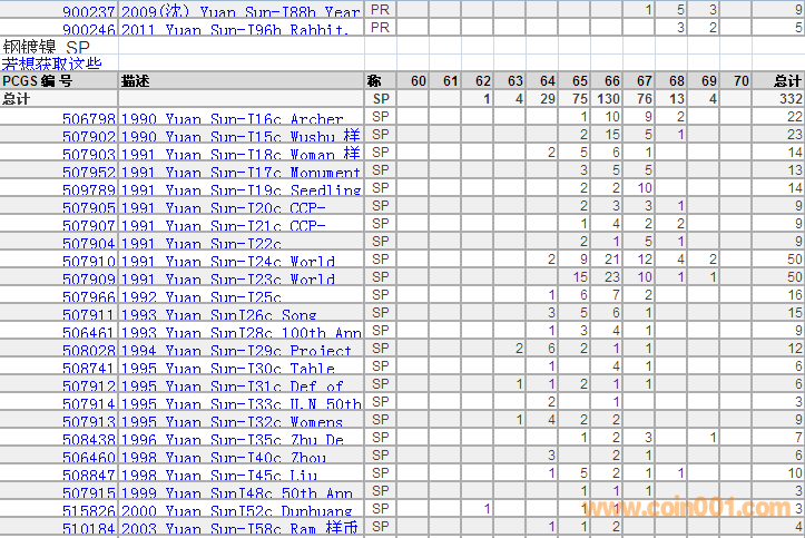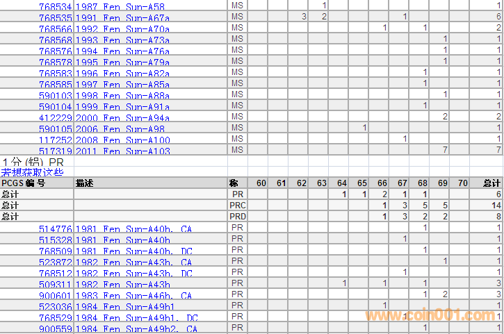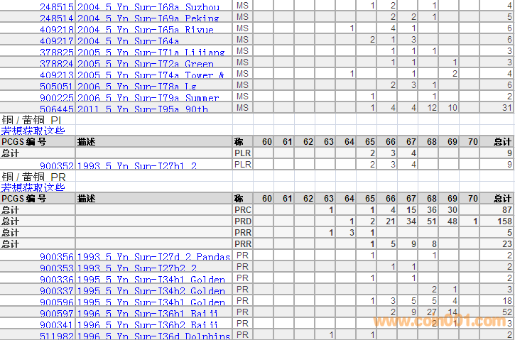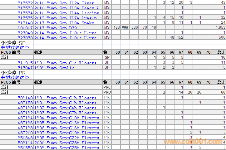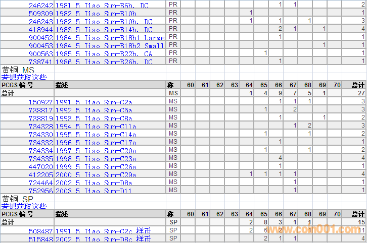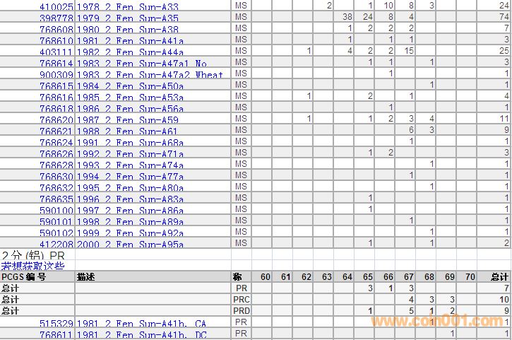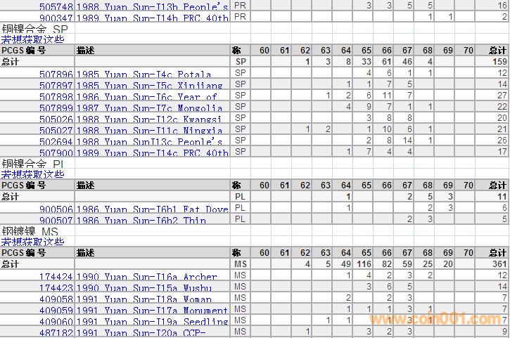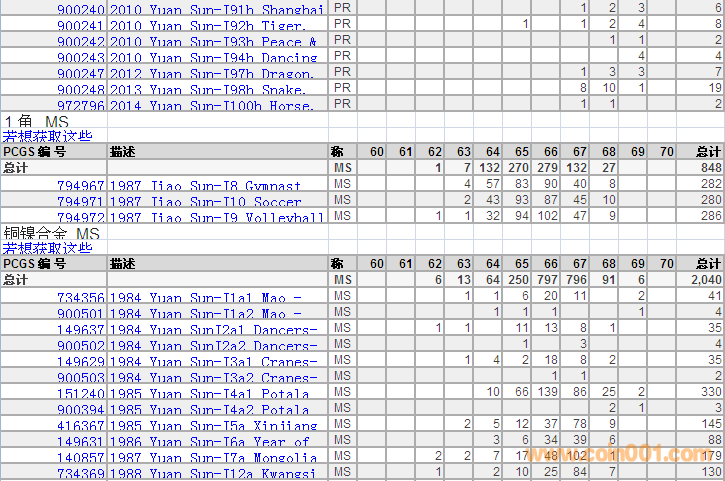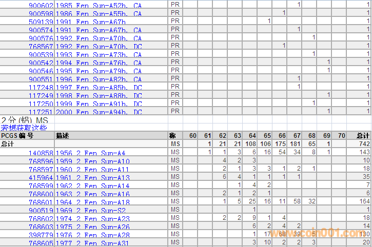 PCGS硬幣評級分數(shù)分布 ..