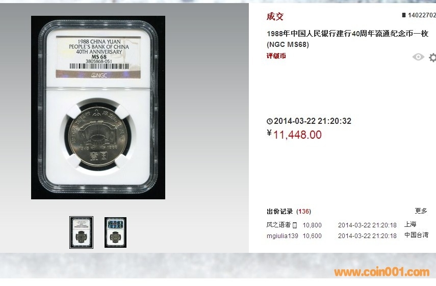 評級普通(精制)紀念幣交易