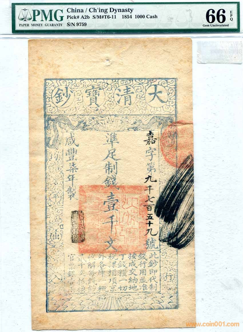 PMG66大清寶鈔1000文
