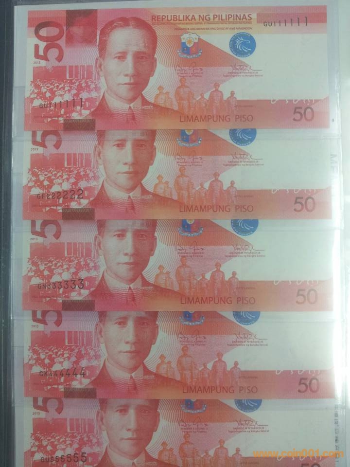 2013"新版菲律賓50披索111111-000000"大全套,1600元