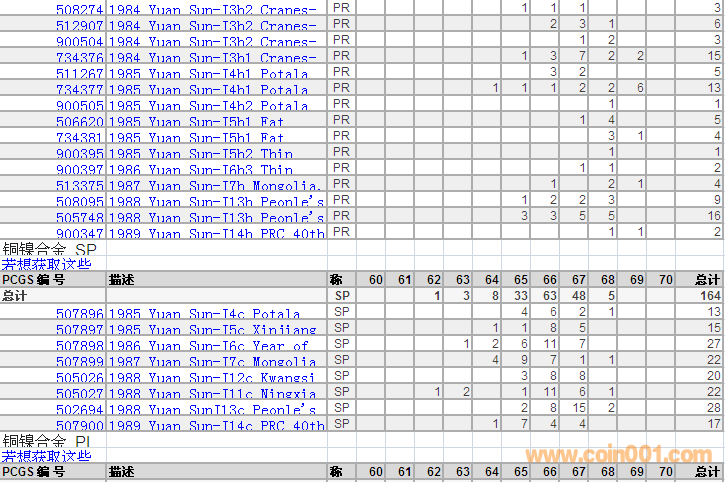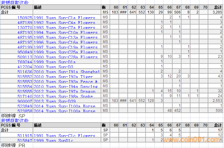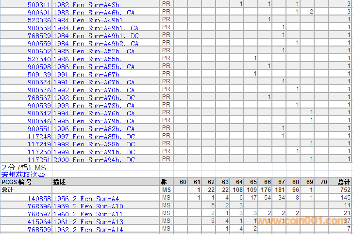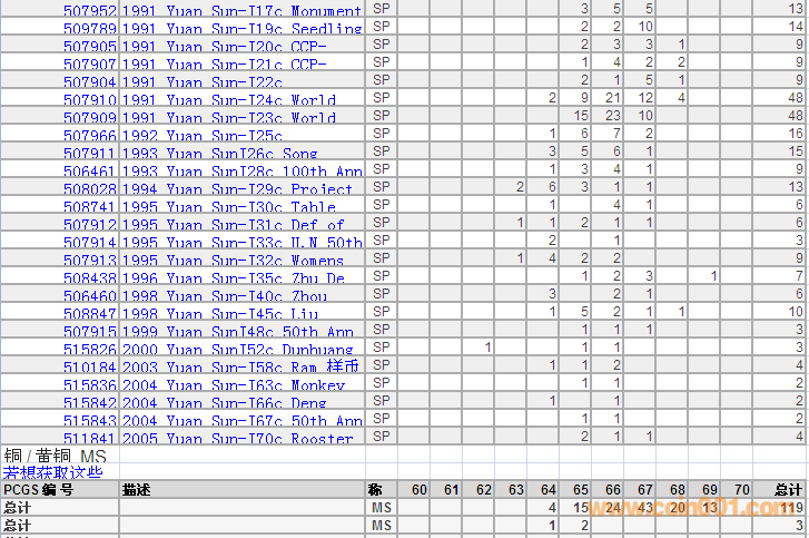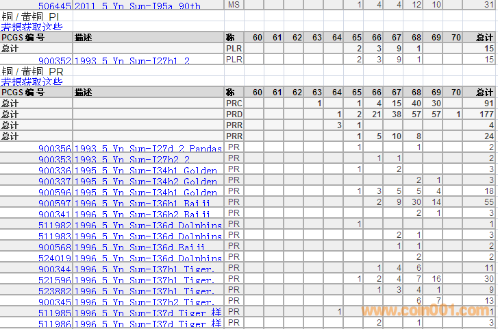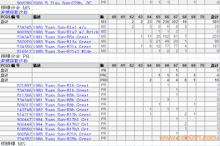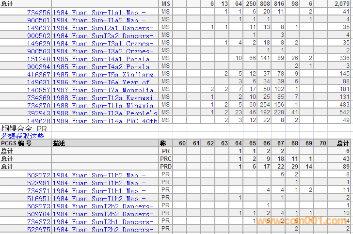 PCGS硬幣評級分數(shù)分布 ..