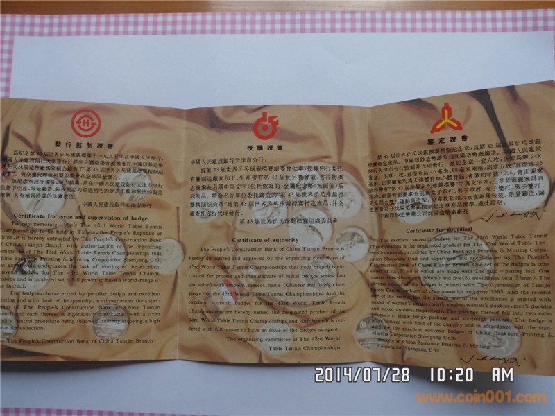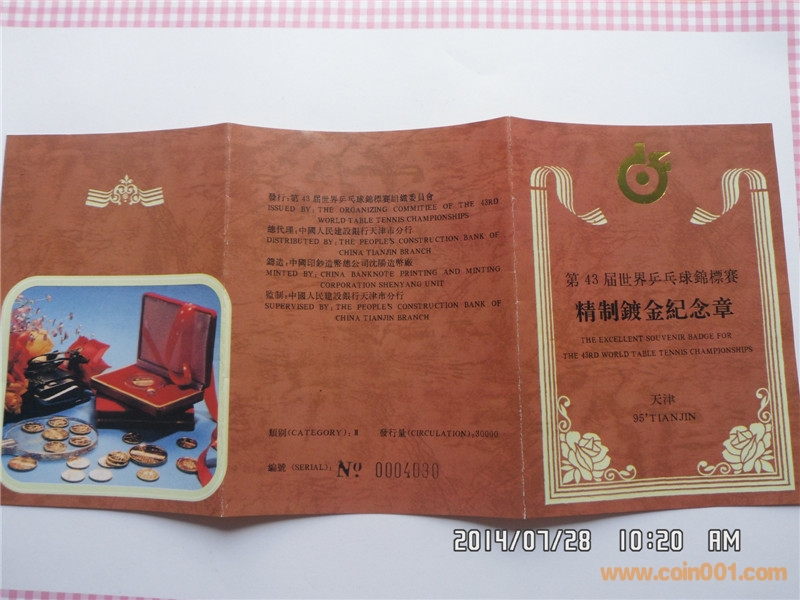 第43屆世乒賽精制鍍金 ..