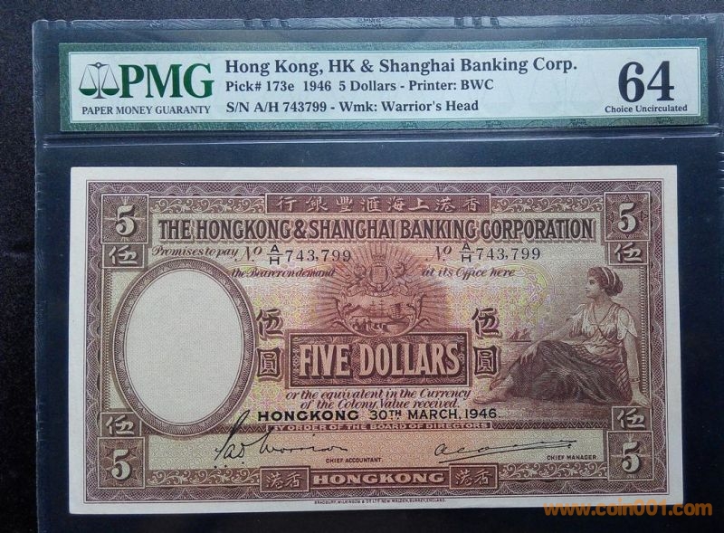 ]匯豐銀行1946 年5元 PMG ..
