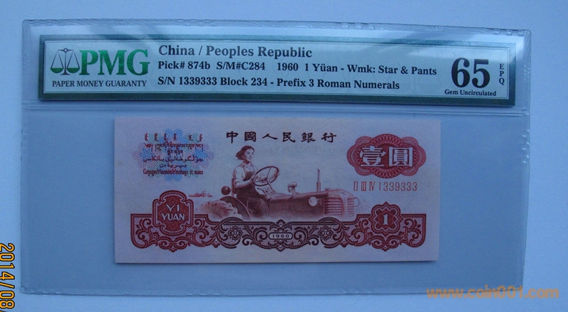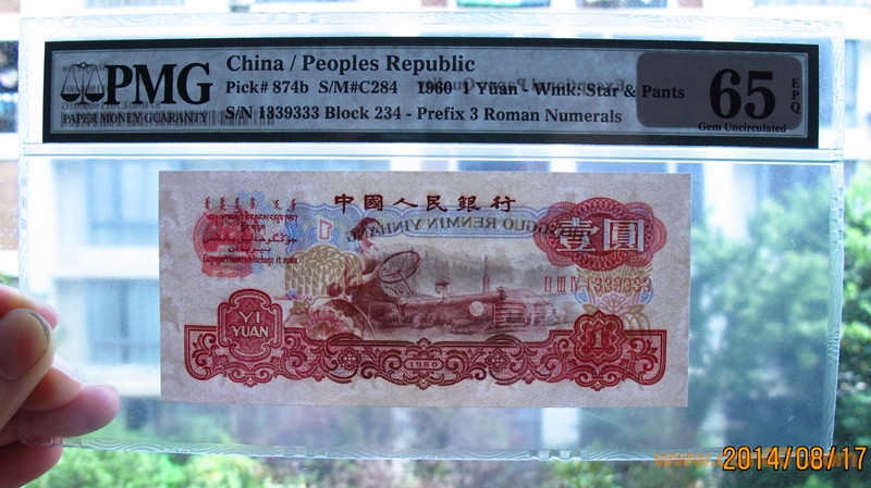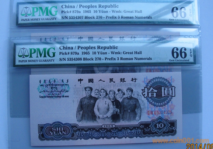 引用 引用第2樓18946630720于2014-08-18 00:23發(fā)表的 : 1、PMG66級三羅馬10元兩張連號,一起售550元 2、PMG66級5元售360元 3、PMG65級1元古幣豹子號,幣狀態(tài)好,包絕品,售800元 4、PMG65級5角888豹子號,嚴重低品,幣包絕中絕售220元 .......