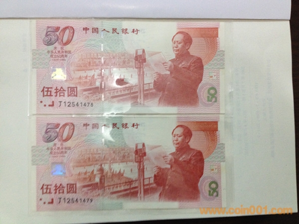 全新兩連號(hào)建國(guó)鈔。