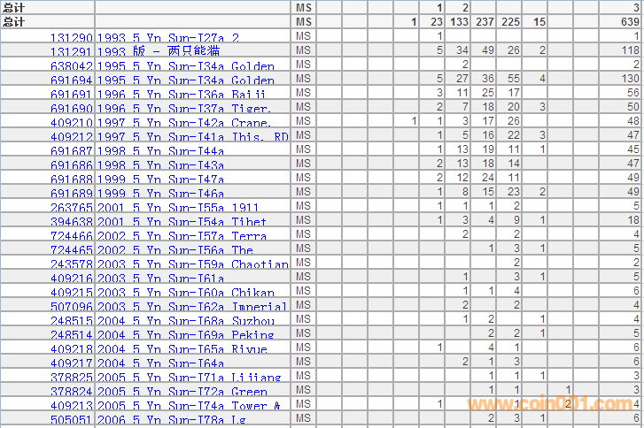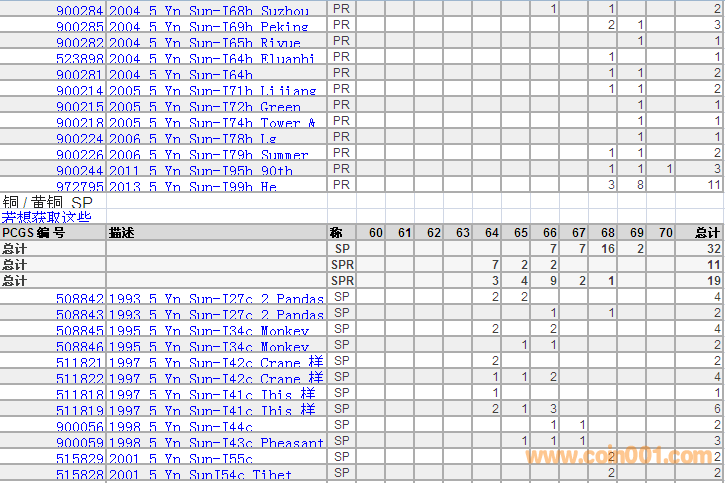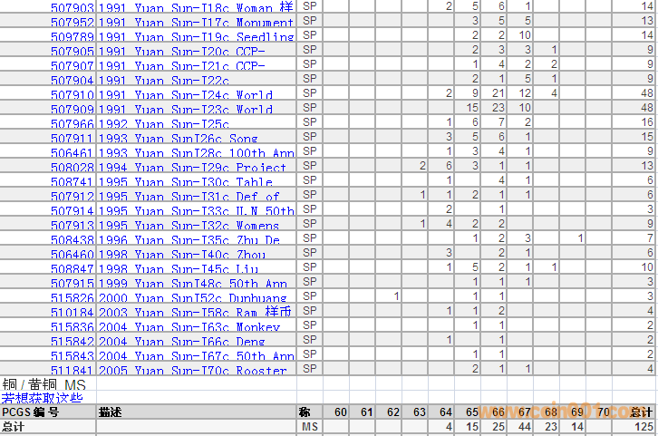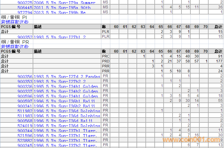 PCGS硬幣評級分?jǐn)?shù)分布 ..