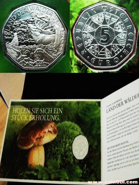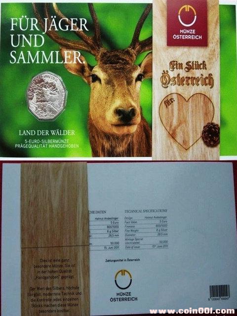 奧地利2011年卡裝5歐元銀幣國(guó)際森林年