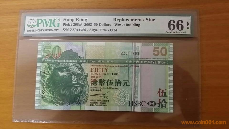 圖片:2003年,香港上海匯豐銀行,補(bǔ)版 伍拾元,ZZ,011789,PMG,66,EPQ.jpg