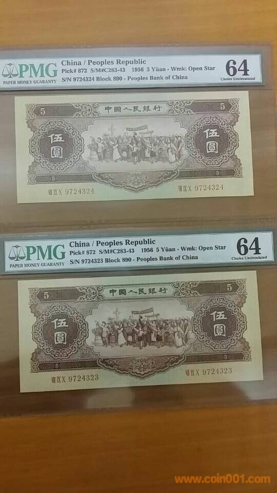1956年,黃伍圓,VII IX X 9724324二連號,64分 3100元/張