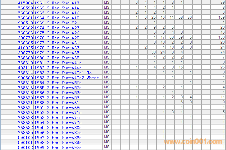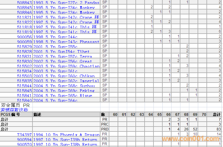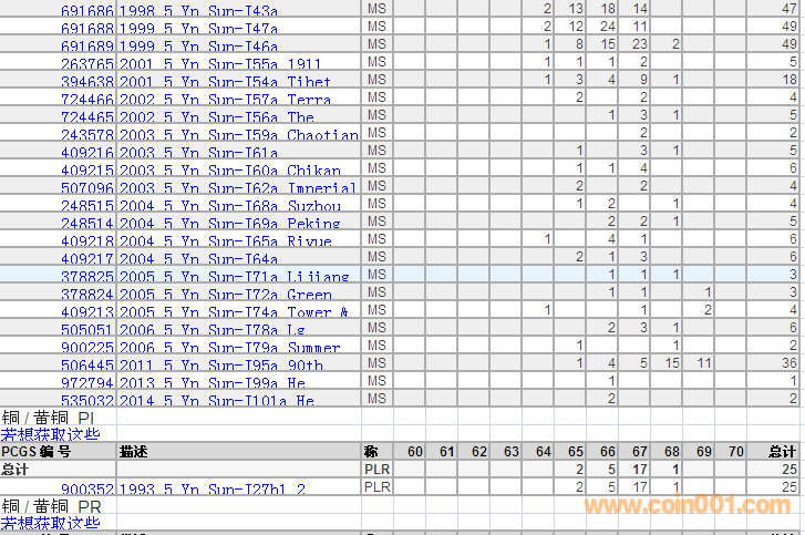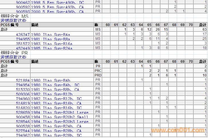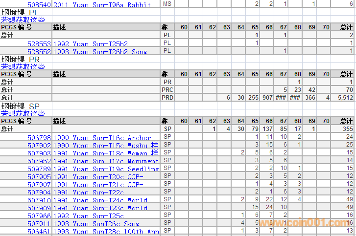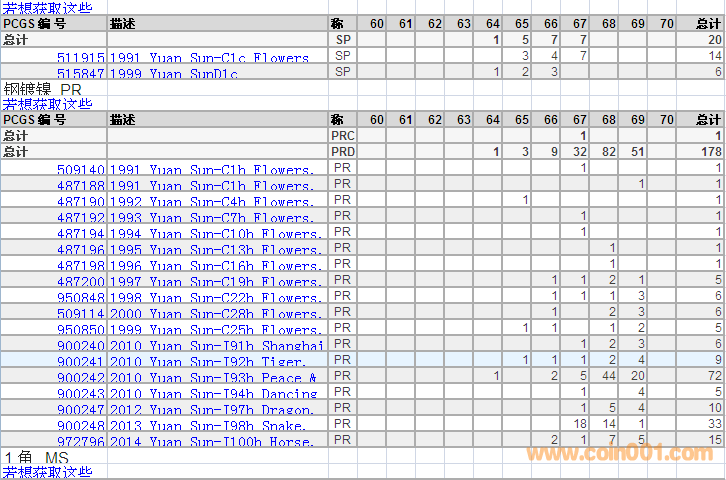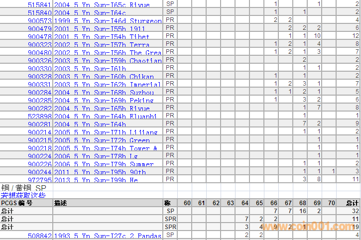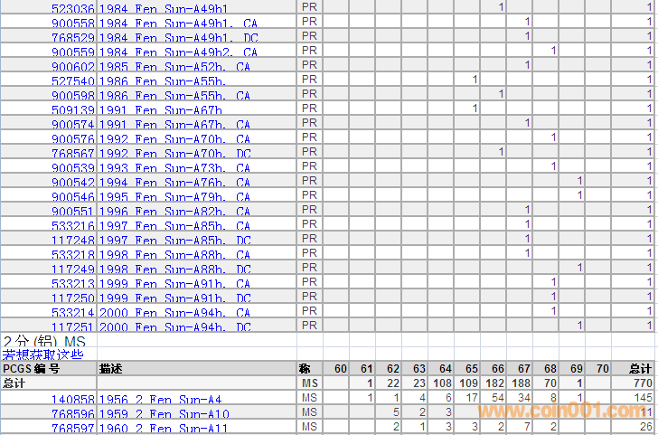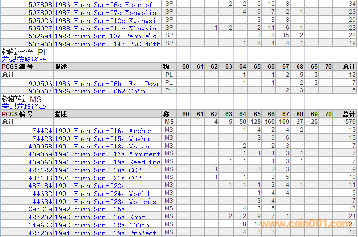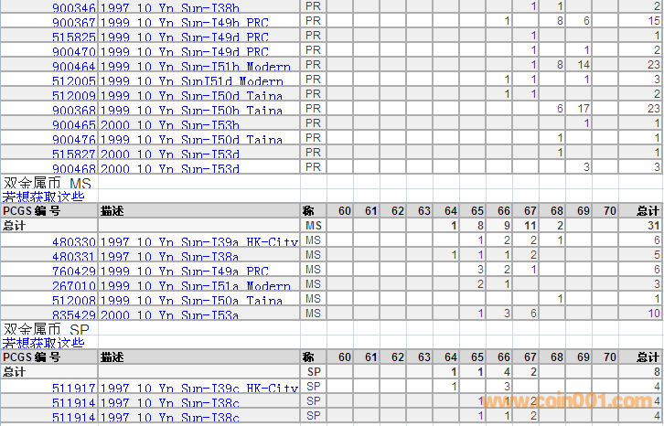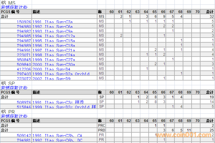 PCGS硬幣評(píng)級(jí)分?jǐn)?shù)分布 ..