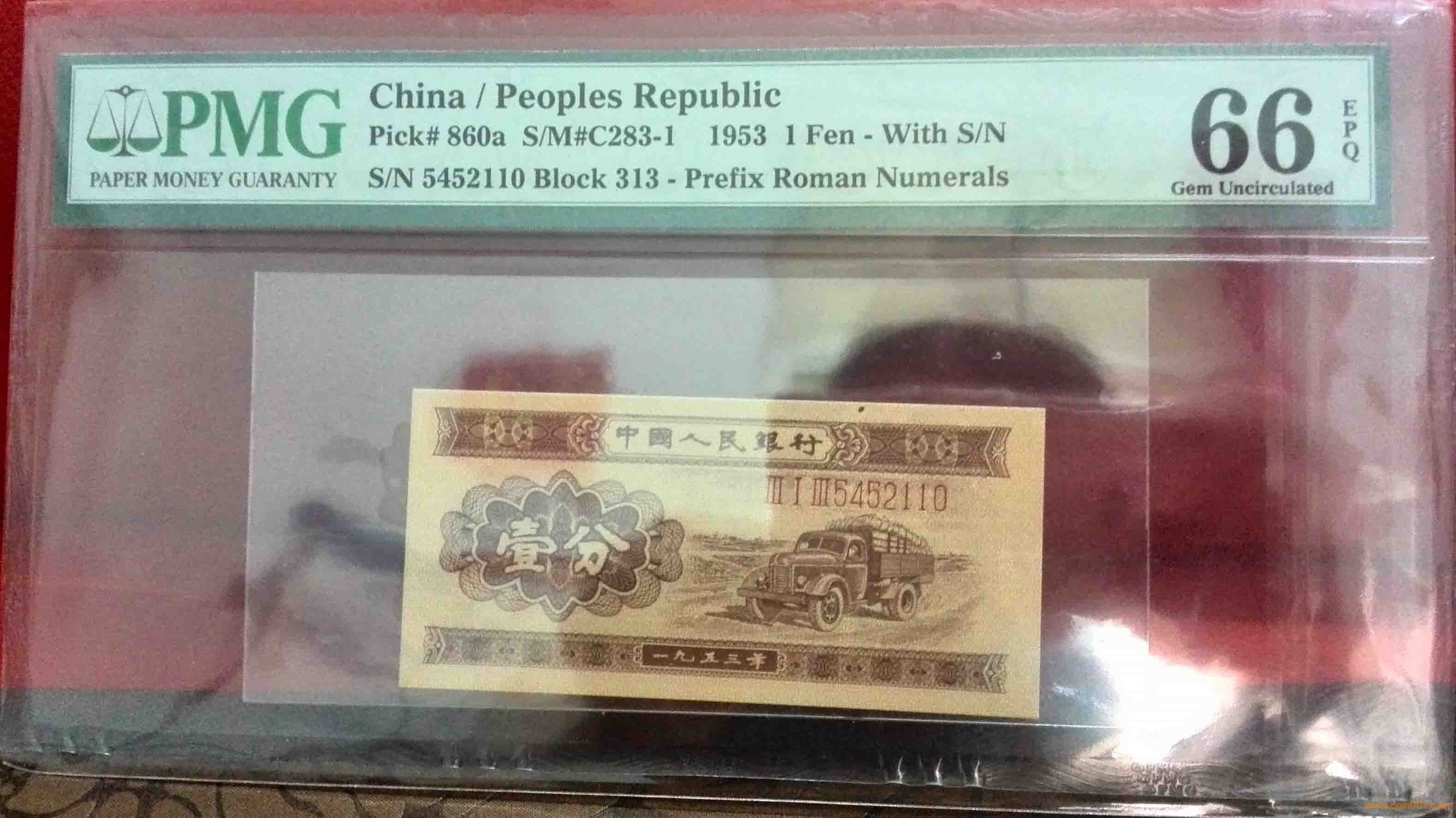 3,1953年,壹分,III I III 5452110,PMG,66,EPQ      200元