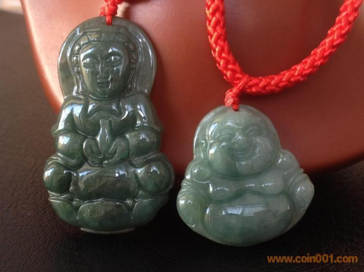 拍翡翠A貨觀音笑佛吊墜一對