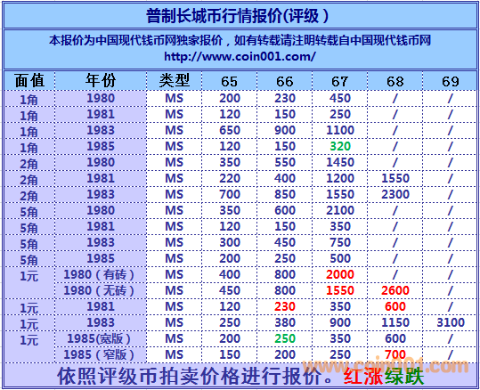 2015,1,1普制長城幣報(bào)價(jià) ..