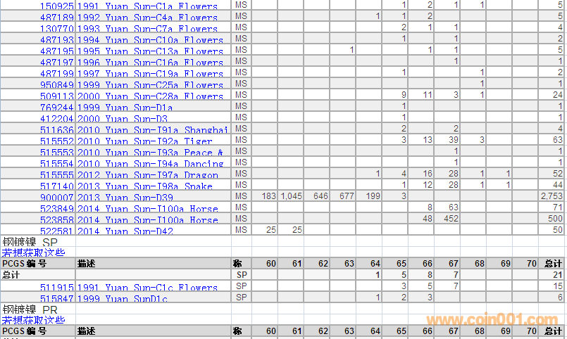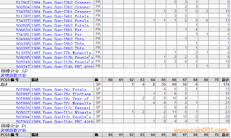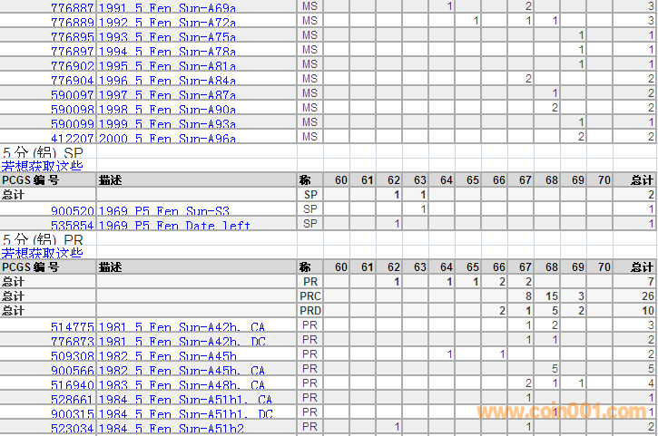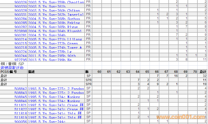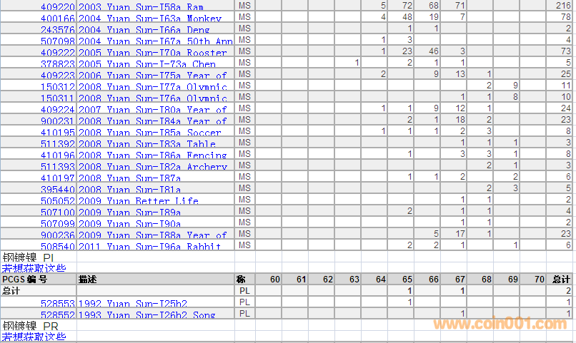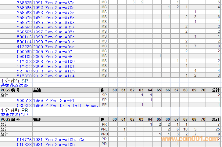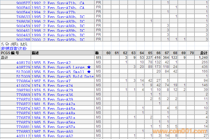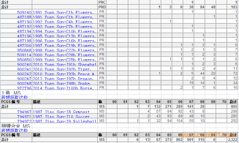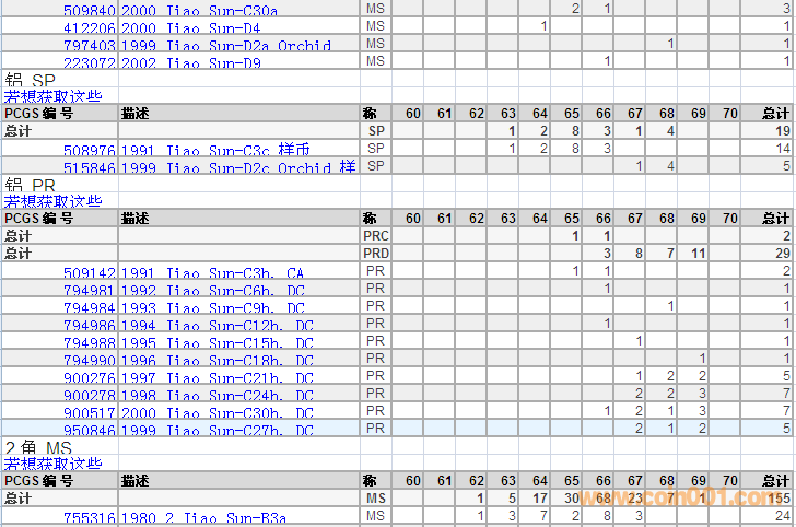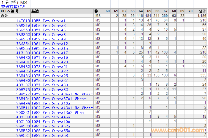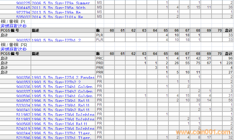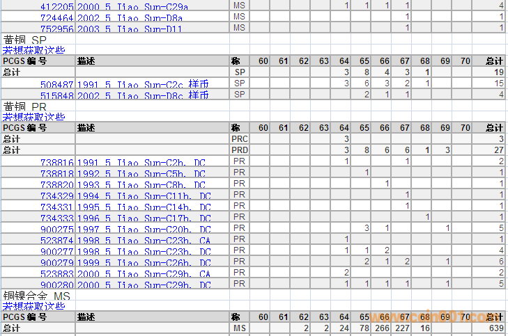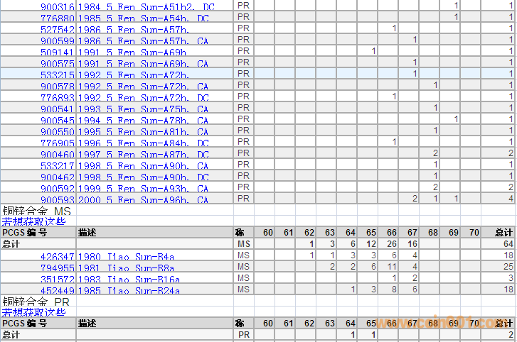 PCGS硬幣評級分?jǐn)?shù)分布 ..