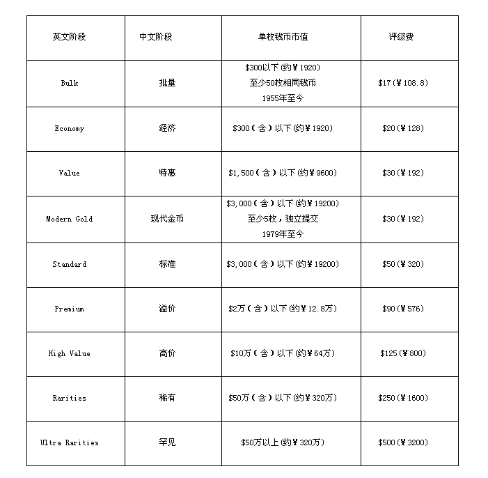 1、直徑超過(guò)45毫米(或5盎司及以上)錢(qián)幣需加收$20服務(wù)費(fèi);