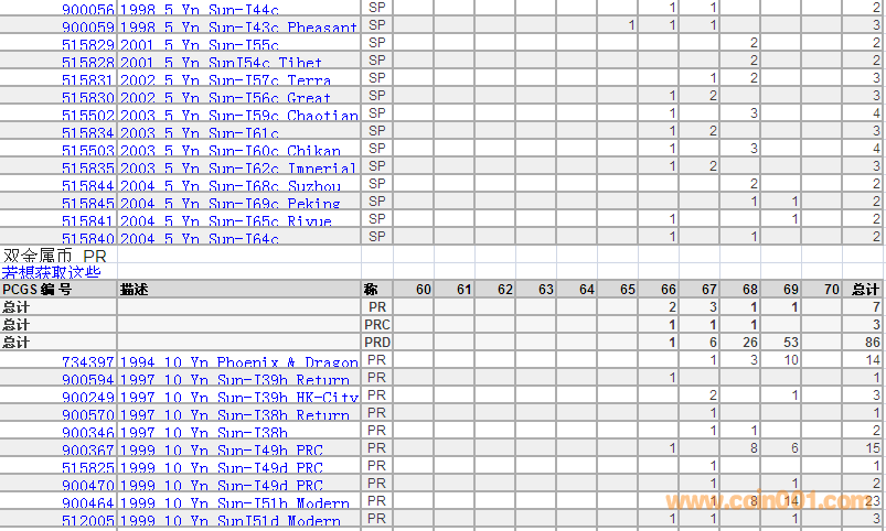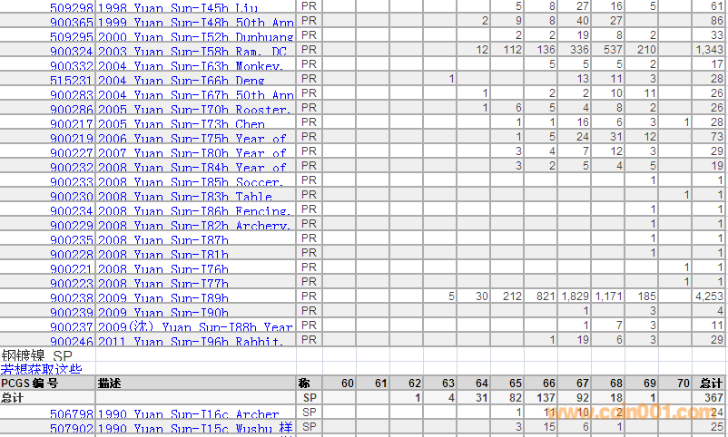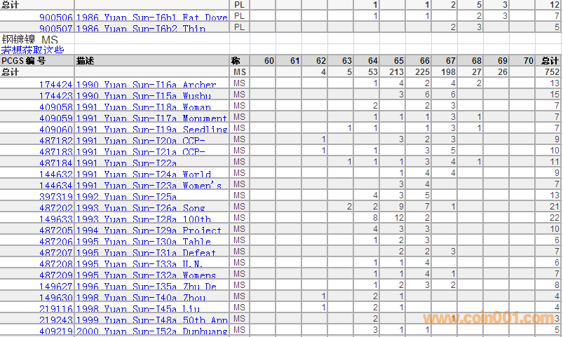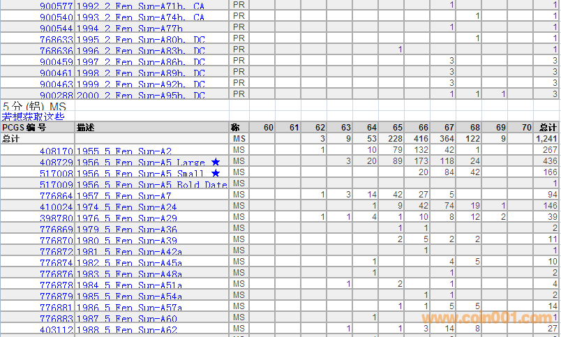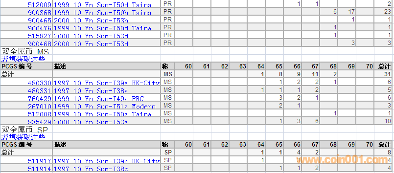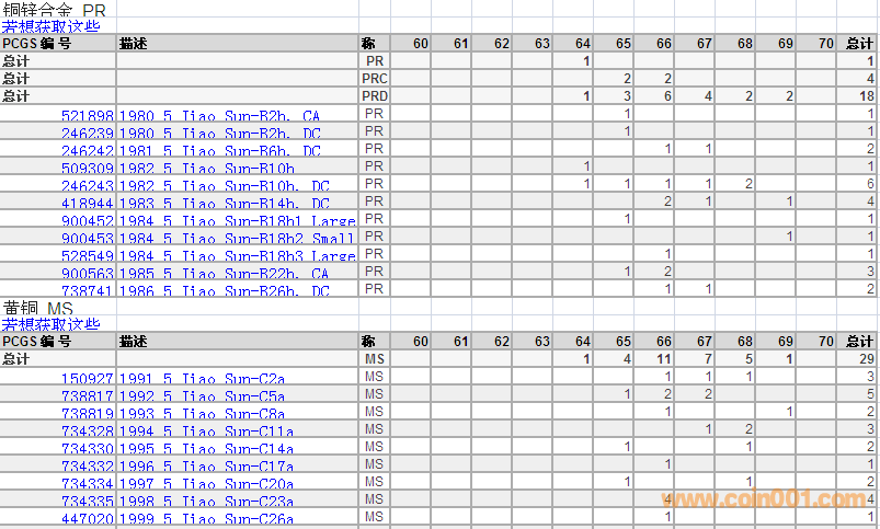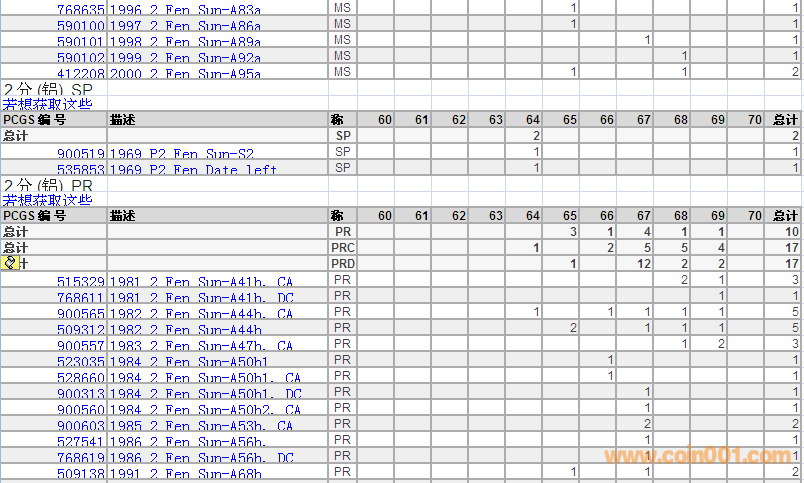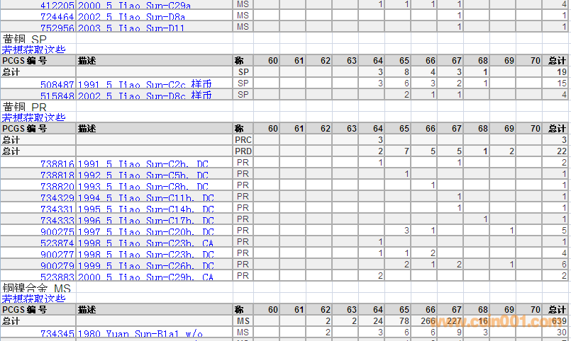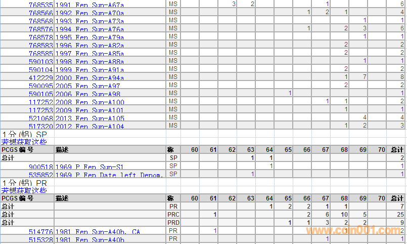PCGS硬幣評(píng)級(jí)分?jǐn)?shù)分布 ..