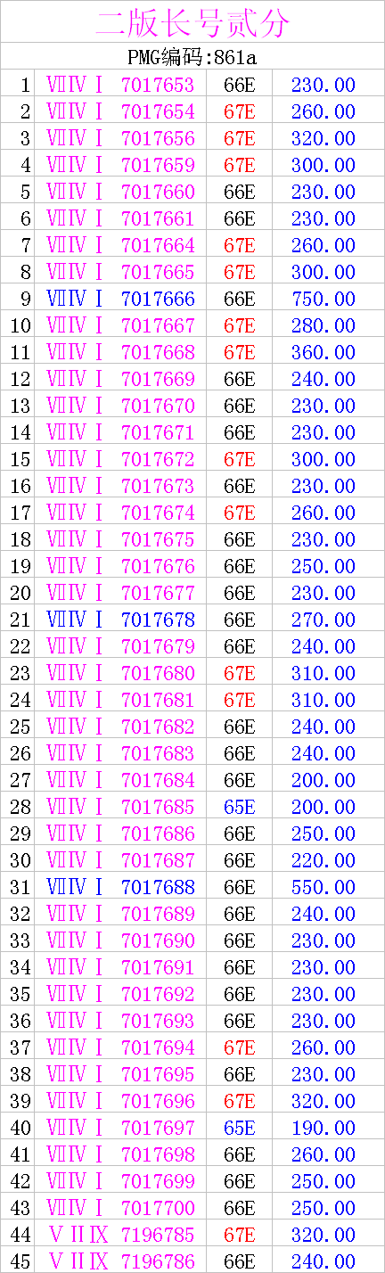 二版長號貳分50連號PMG67、66E(6**號段,無4)
