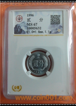1996年普制1分、2分、5分全部評級為MS67分一套768元。