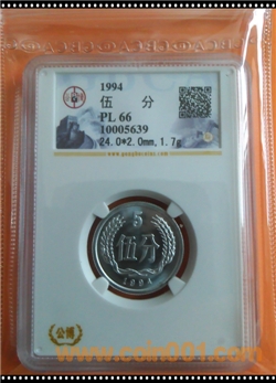 1994年普制1分MS67分、普制2分MS67分、半精致5分PL66分(唯一評級1枚)一套899元。