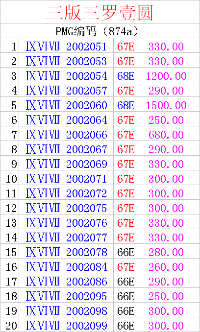 三版三羅壹圓50連號PMG ..