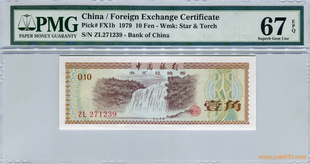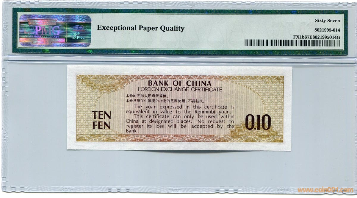 低價(jià)出售:PMG 67分 EPQ 外匯劵【火炬水印】壹角