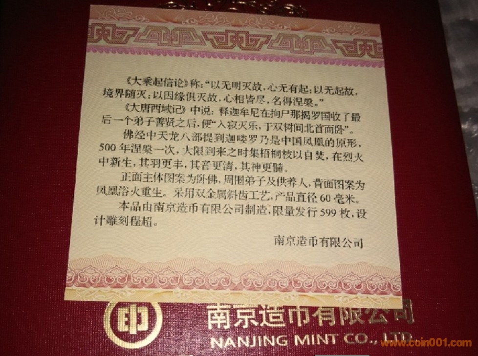 南京造幣廠60mm涅槃鳳 ..