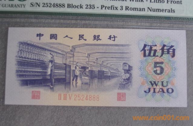 PMG 65三版伍角豹子號888