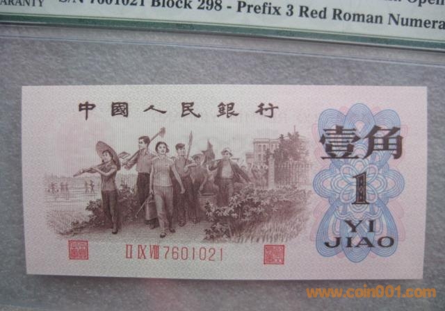 三版紅三凸137、138冠壹角券于1966年底出生,它是三版背水、背綠與一般紅三凸券的過(guò)渡幣種。它的油墨和紙張均直接使用背水、背綠高檔幣種的印鈔紙,且紙張油性、墨色油潤(rùn)、凹凸明顯,空心五星水印,票幅較一般紅三凸偏大約1.2MM,其印刷工藝和背水、背綠券完全相同。故137、138冠組極為珍貴,價(jià)值會(huì)越走越高。目前市場(chǎng)上137冠組紅三凸網(wǎng)上標(biāo)價(jià)約為1800元——2500元/張,而138冠券價(jià)格嚴(yán)重低估,且紅三凸一張補(bǔ)號(hào)約為2000元/張。
