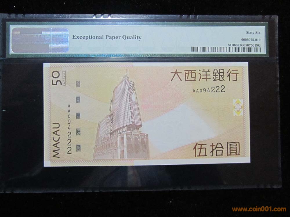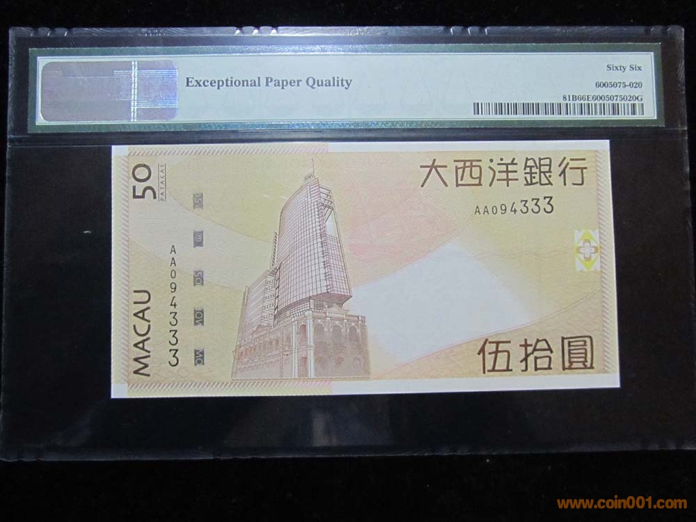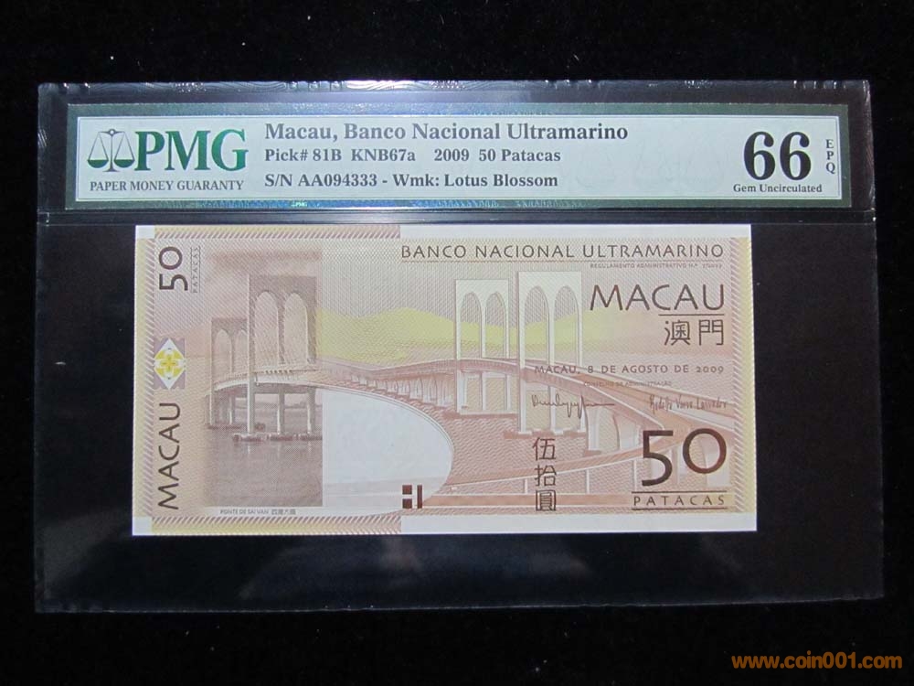 澳門(mén) 2009年 50元 PMG 66 ..