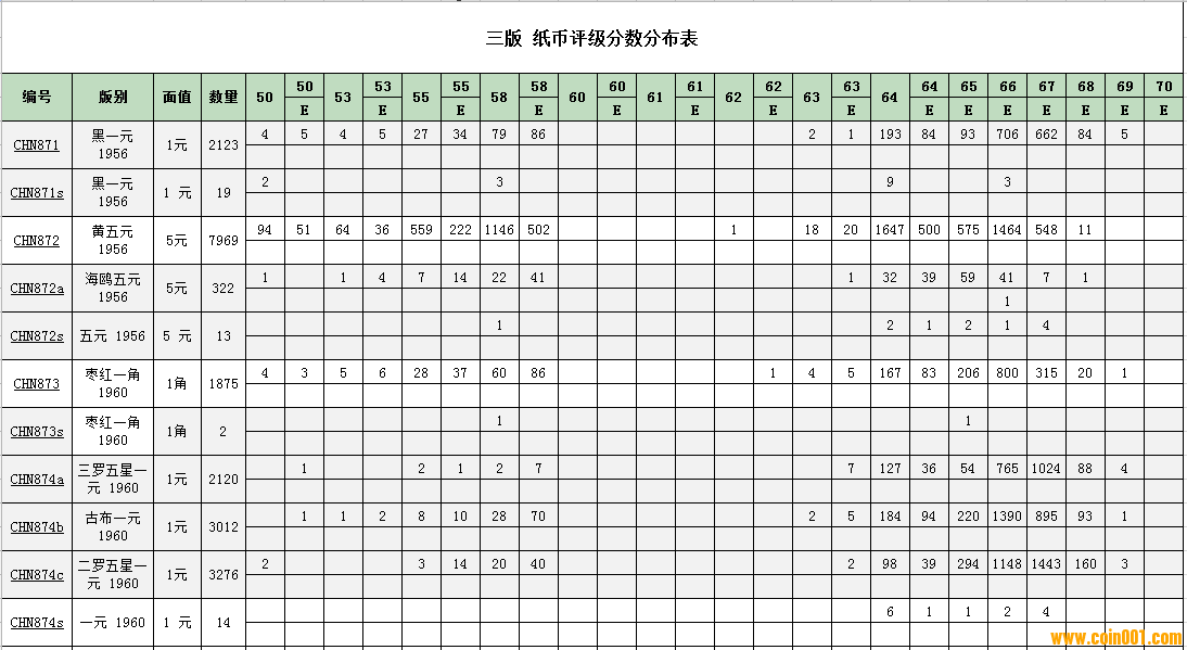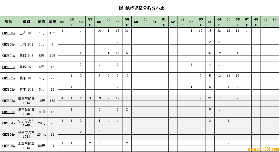 PMG紙幣評(píng)級(jí)分?jǐn)?shù)分布 ..
