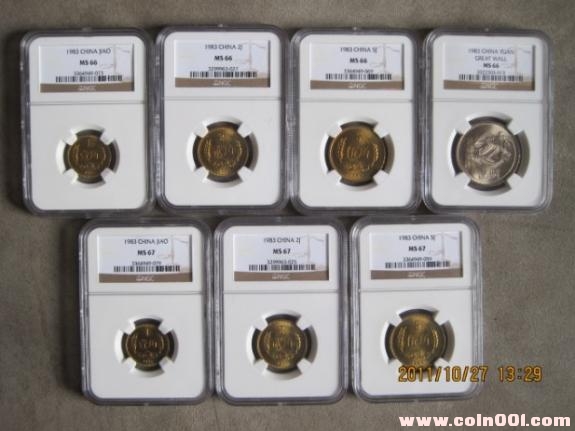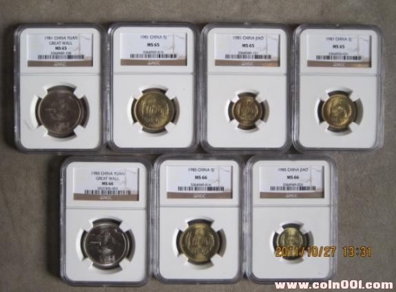 4:1985年一元,5角.1角三枚66分同分.有兩套.單套售價(jià)1299元(一元為廣州現(xiàn)場(chǎng)評(píng)級(jí))