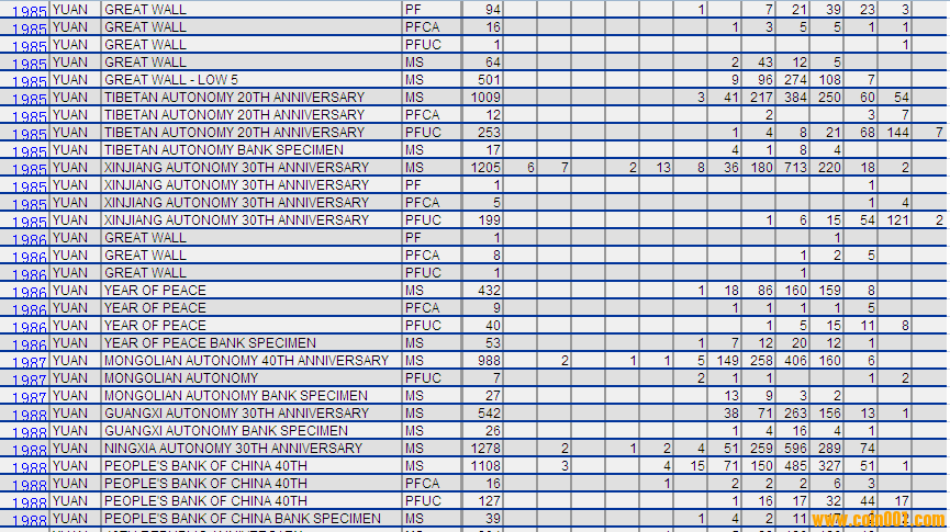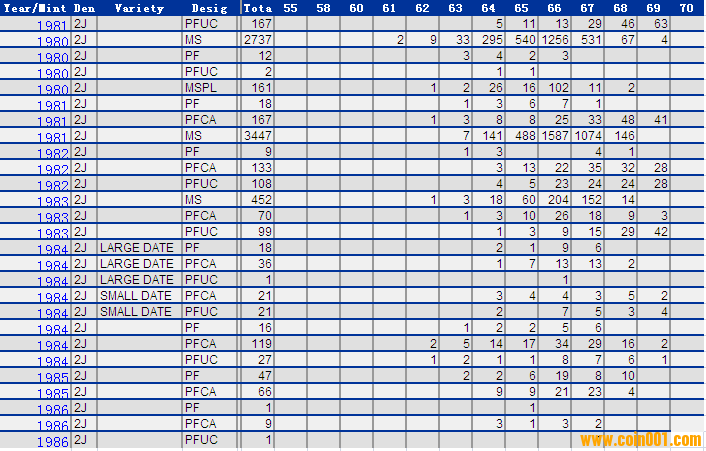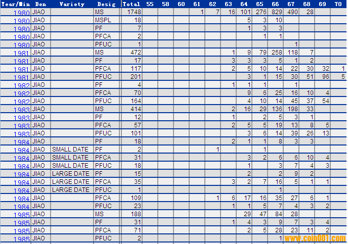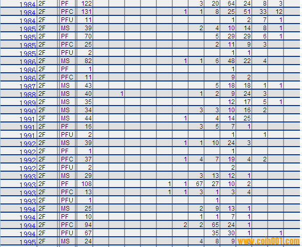 NGC硬幣評級分?jǐn)?shù)分布 ..