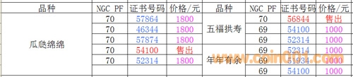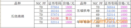 評級普通(精制)紀念幣交易