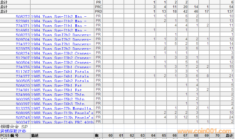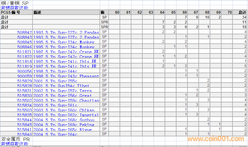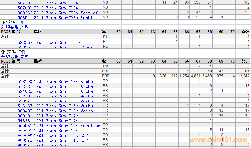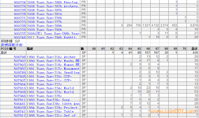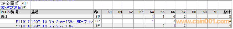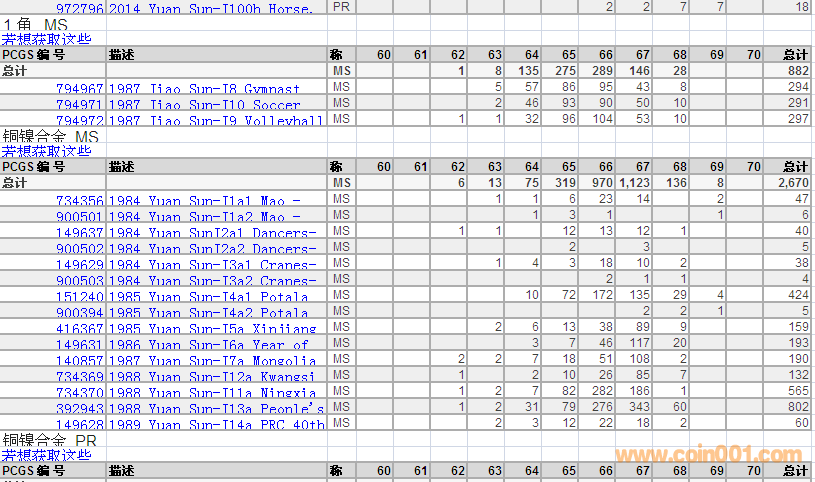 PCGS硬幣評級分數(shù)分布 ..