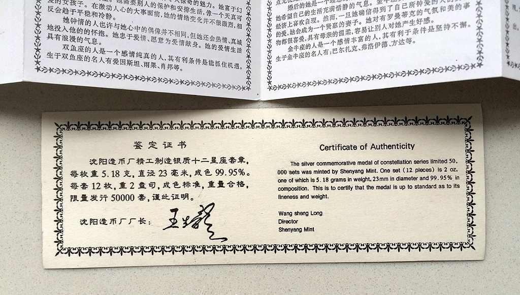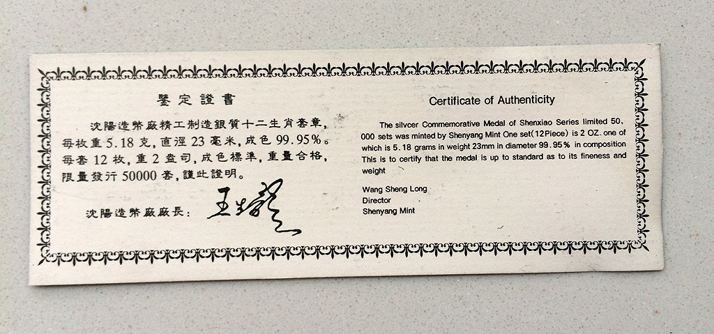 引用 引用樓主碧海青天于2015-07-17 13:52發(fā)表的 沈幣廠十二生肖、十二星座純銀紀(jì)念章 : 沈幣十二生肖純銀紀(jì)念章1000元/套 .......