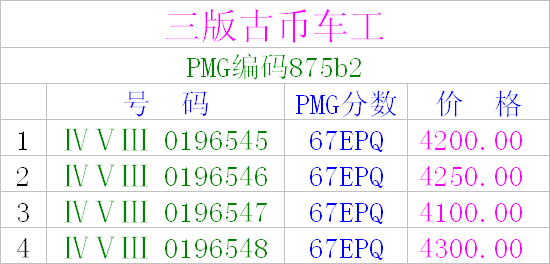 三版古幣車工PMG67四連 ..