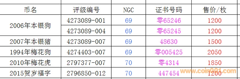 評級普通(精制)紀念幣交易