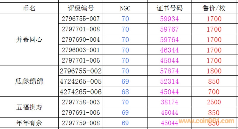 評級普通(精制)紀(jì)念幣交易