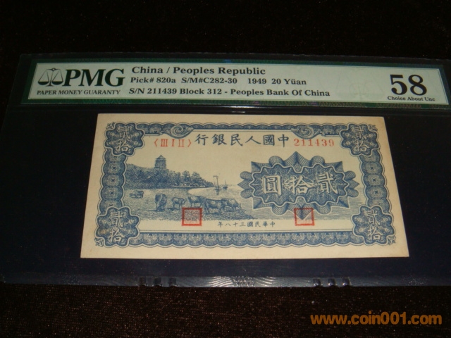 一版20元藍(lán)塔下放牛PMG58分:10450元