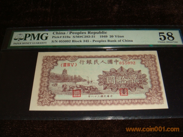 一版20元棕塔下放牛PMG58分:12100元