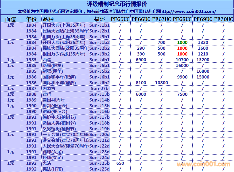 評級普通(精制)紀念幣交易