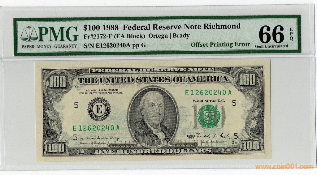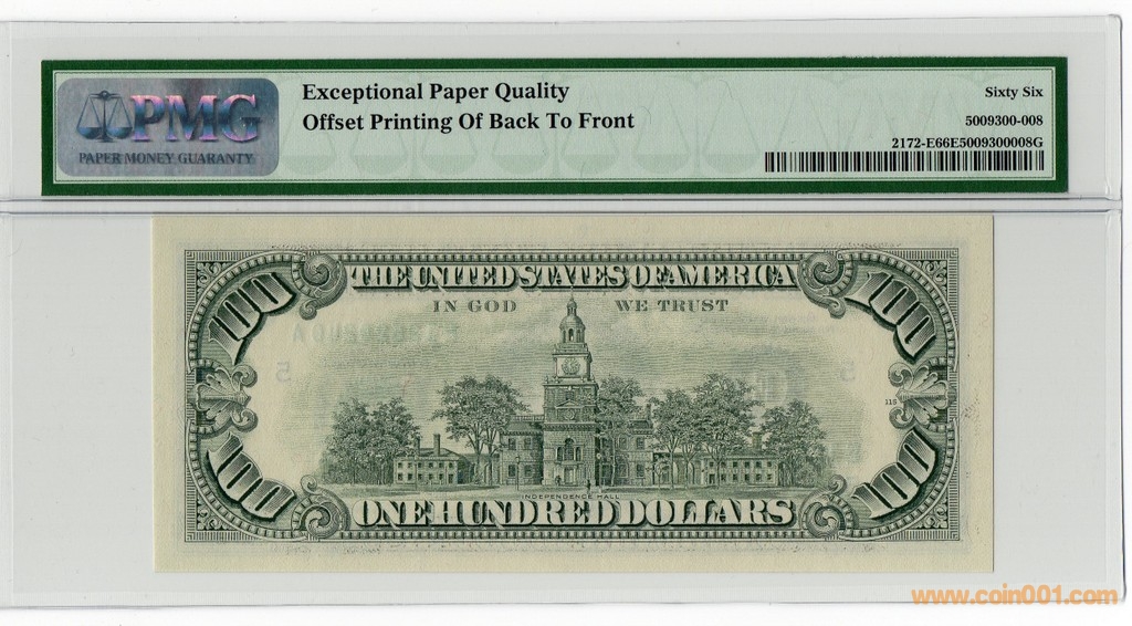 100美元錯(cuò)版幣PMG66一枚